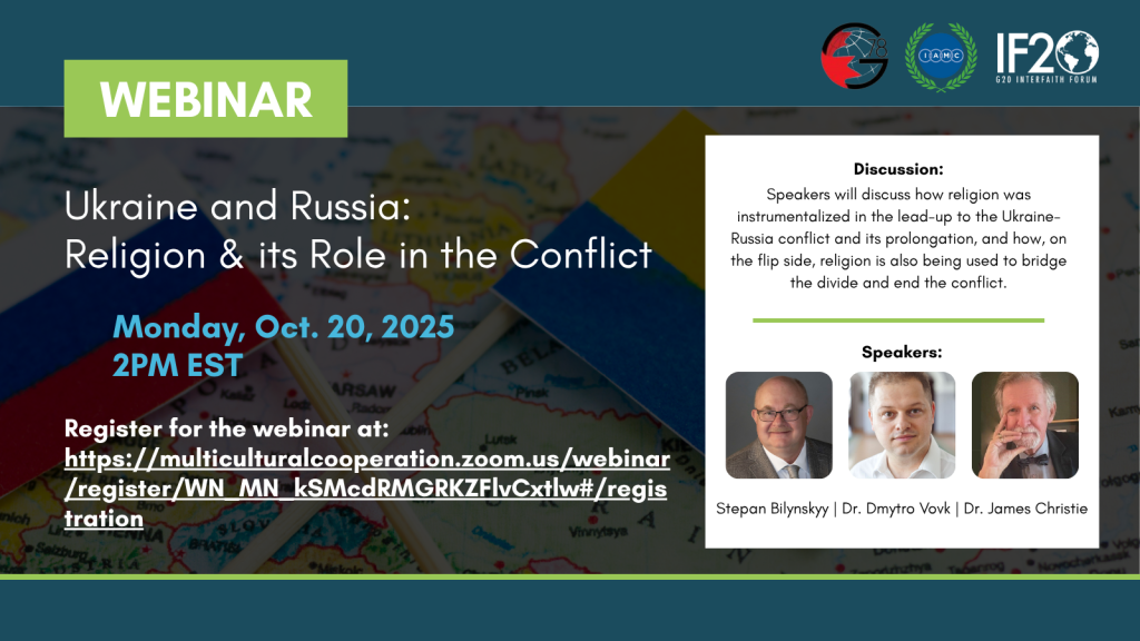 On October 20, 2025, the G20 Interfaith Forum’s Anti-Racism Initiative, in partnership with the Group of 78 and the International Academy for Multicultural Cooperation, held a webinar entitled “Ukraine and Russia: Religion and its Role in the Conflict.”
